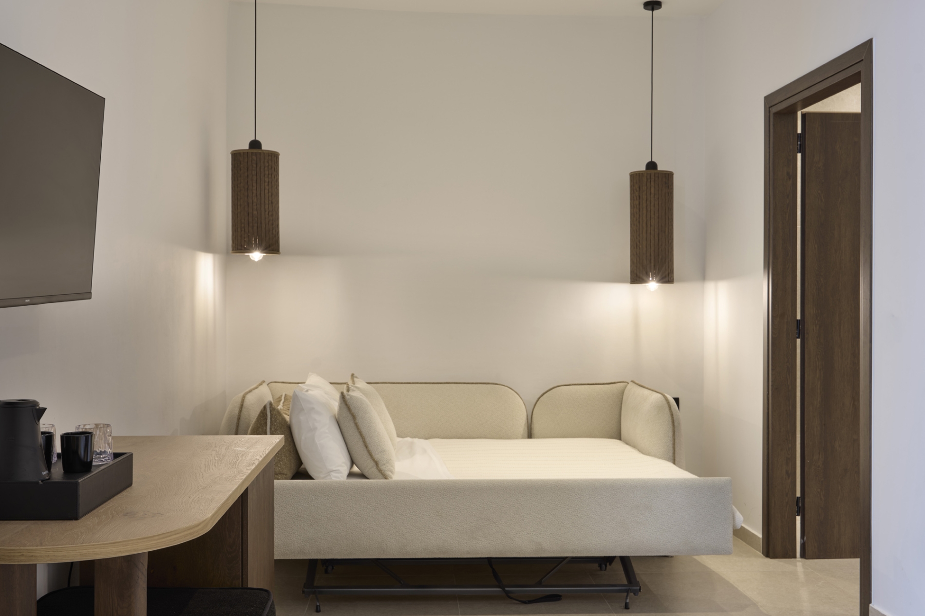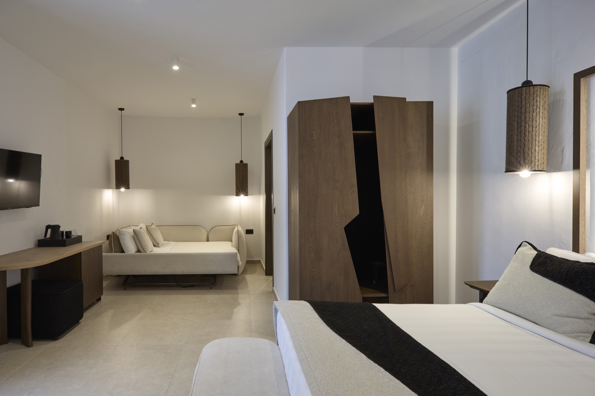 34 M2 • 1-4 GUESTS • 1 DOUBLE KING SIZE BED & 1 ΚΑΝΑΠΕΣ-ΚΡΕΒΑΤΙ ΓΙΑ 2 ΑΤΟΜΑ