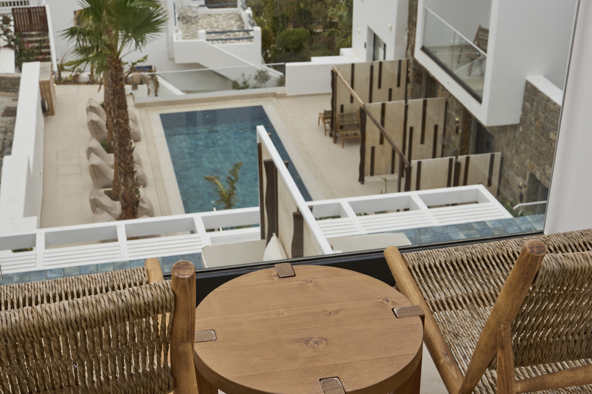 Ξυπνήστε με φόντο το απέραντο γαλάζιο στο Deluxe Double Room with Pool View, εκεί όπου η κυκλαδίτικη κομψότητα συναντά την σύγχρονη άνεση. Το δωμάτιο είναι φωτεινό και διαθέτει ένα άνετο διπλό ή king-size κρεβάτι που σας προσκαλεί να χαλαρώσετε. Η ιδιωτική του βεράντα προσφέρει έναν οικείο χώρο για πρωινό καφέ ή απογευματινά ηλιοβασιλέματα, με ανεμπόδιστη θέα στην πισίνα και την αρχιτεκτονική του περιβάλλοντος χώρου. Στο εσωτερικό, το minimal design συνδυάζεται αρμονικά με απαλούς, γήινους τόνους και προσεγμένες υφές, αποπνέοντας τη διαχρονική γοητεία της Μυκόνου. Το δωμάτιο περιλαμβάνει μοντέρνο μπάνιο με ντους, πολυτελή προϊόντα περιποίησης, γρήγορη σύνδεση Wi-Fi, κλιματισμό, μίνι μπαρ και τηλεόραση επίπεδης οθόνης — όλα σχεδιασμένα για να απογειώσουν μια ρομαντική απόδραση ή μια ήρεμη ατομική διαμονή.